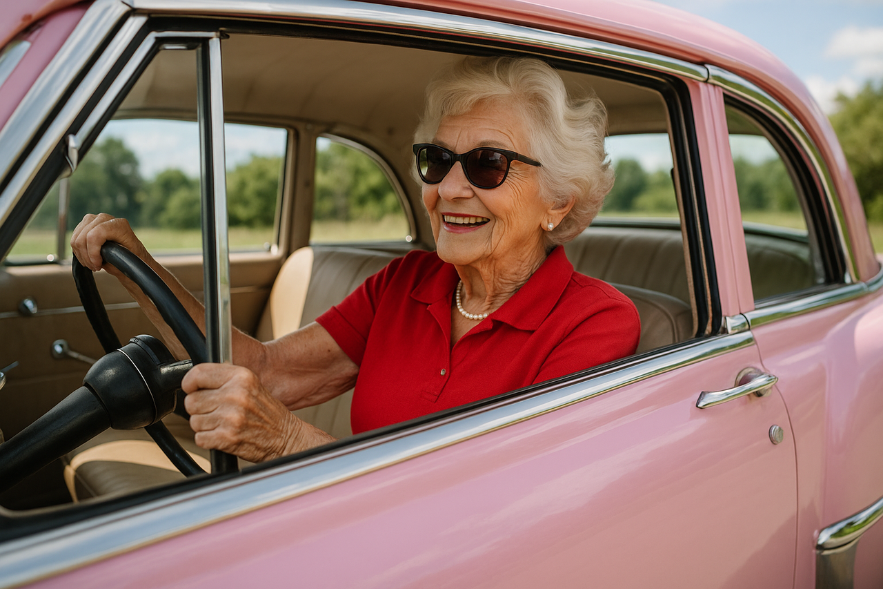 例えば、80代の赤いシャツを着たオシャレなおばあさんが、大きなピンクのキャデラックを危なっかしそうに運転しながら、うっかり逆走してしまう――そんな“元気すぎる”姿さえも印象的でした。